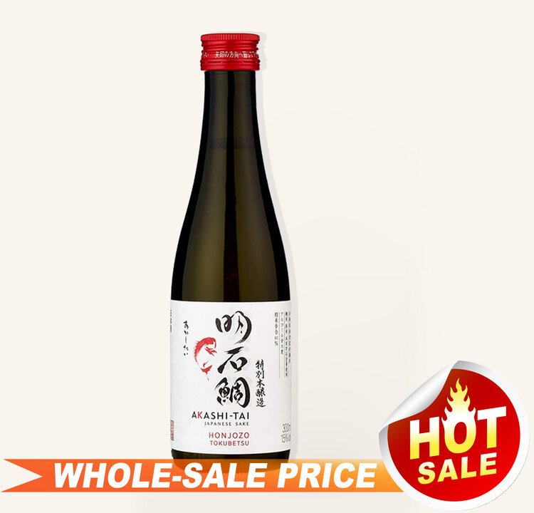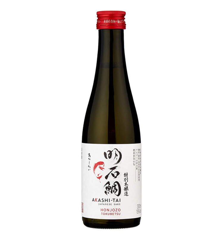Akashi Tai Tokubetsu Honjozo Sake is a lighter-bodied sake enhanced with a touch of alcohol before filtering, which accentuates its clean and savory notes. It features a delicate aroma with hints of lemon, lime, and straw, and offers a lively initial taste followed by refreshing citrus flavors and a smooth, well-balanced finish. Its extended and robust finish makes it an excellent choice to pair with a multi-course meal.