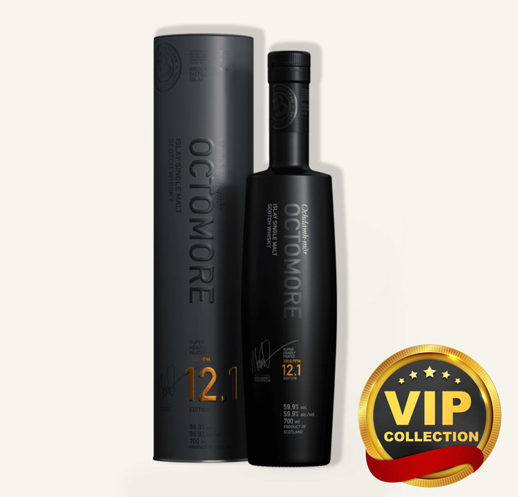 Nowhere is the dualism of Octomore super heavily peated series more pertinent than in the No.1 edition. Never as expected, delicate but powerful, this is unadulterated heavy smoke balanced with our vivacious and dynamic, fruity and floral distillate. While Octomore in itself does not conform to tradition, the Head Distiller Adam Hannett is inclined to mature Octomore .1 editions solely in ex-American whiskey casks for 5 vibrant years. Octomore 12.1 is the necessary control for the rest of the series, as experiments within an experiment, but their baseline should not be underestimated. Mainland grown Scottish barley is distilled in a patient and considered trickle. The stripped back maturation profile allows a sensory conversation that highlights the cereal-rich, malty notes of this barley-forward single malt. Vanilla, citrus and fudge culminate in an enigmatic challenge to received whisky wisdom.