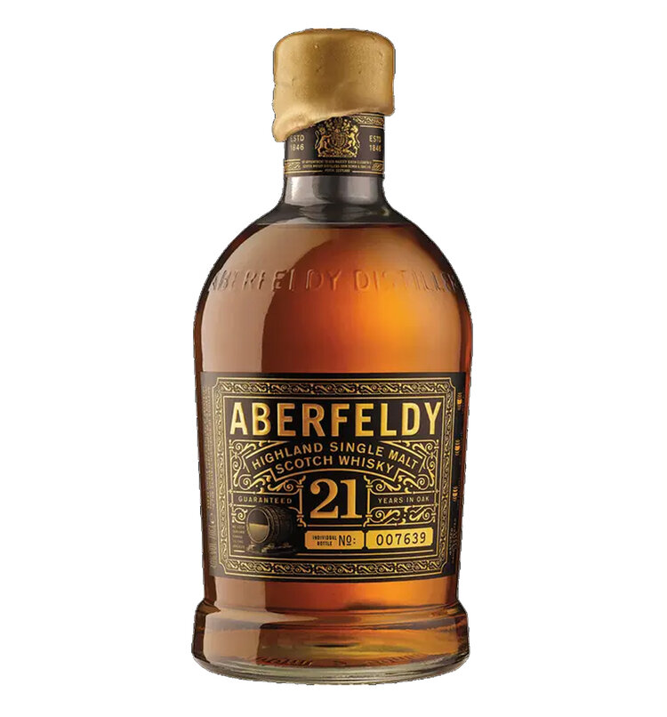 Highlands, Scotland- 21 years of aging has added dignity to Aberfeldy's distinctive heather honey softness. The taste lingers like a fine liqueur with its long, dry finish enhanced by notes of mature Seville oranges, spices, vanilla and sandalwood. Sip and savor this exclusive whisky.