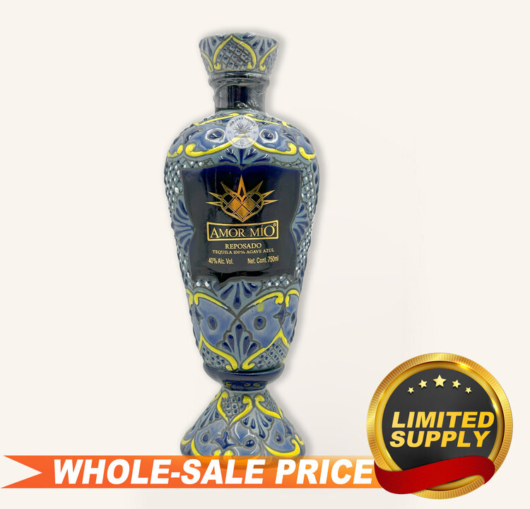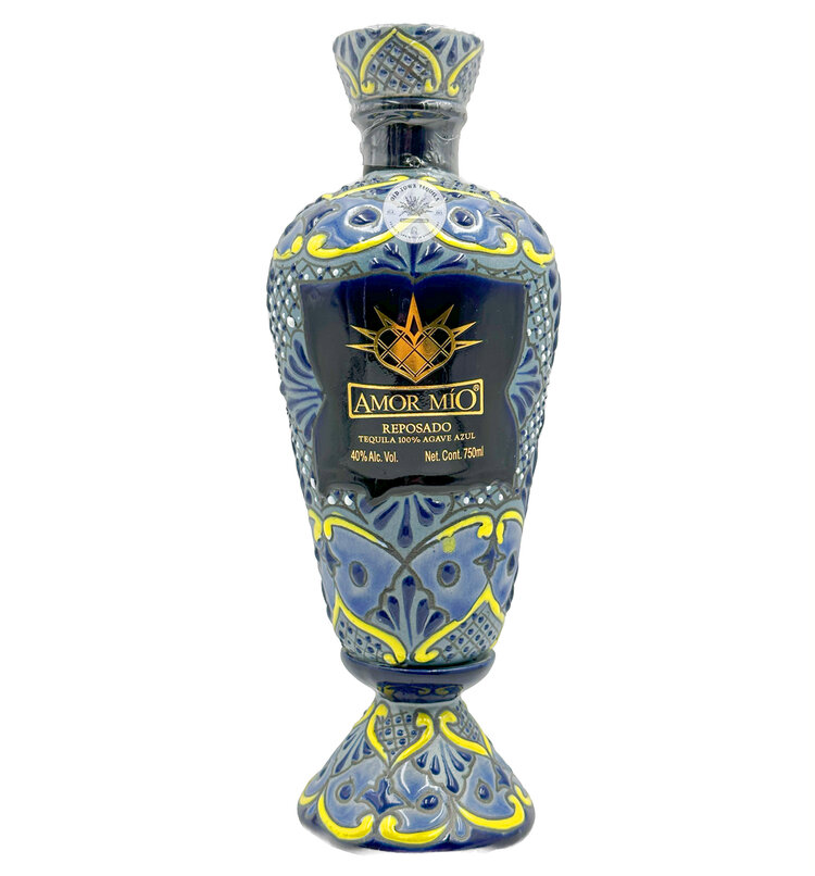 Amor Mio Reposado Blue - Mixture of American oak and French oak barrels means that the Amor Mio Reposado Blue has particular aromas and flavors such as vanilla, oak, honey and fruity touches. Its transparent color has golden and coppery flashes.