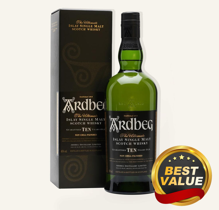 Ardbeg Ten Years Old Single Malt Scotch Whisky (750 ML) SILVER MEDAL 2007 SAN FRANCISCO SPIRITS COMPETITION. Ardbeg 10 year old has deep peat notes, with tobacco and coffee notes. The finish is long and smokey with a sweet malted cereal character.