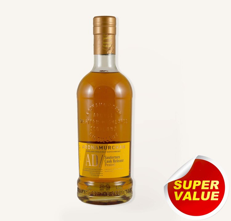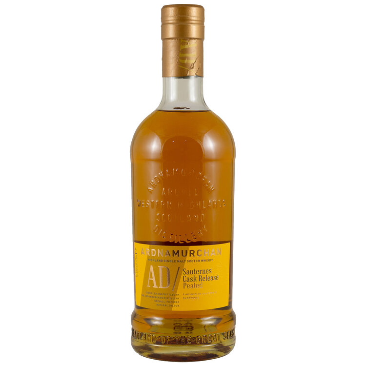 The Ardnamurchan Sauternes Cask is a limited-release, unpeated (mostly) single malt Scotch from Scotland's west coast, known for its rich fruitiness (apricot, honey) balanced by coastal minerality and spice, aged in ex-Sauternes wine casks for extended finishing, and offering a complex palate with notes of orchard fruits, oak, and vanilla, finishing long with subtle peat and sea salt.