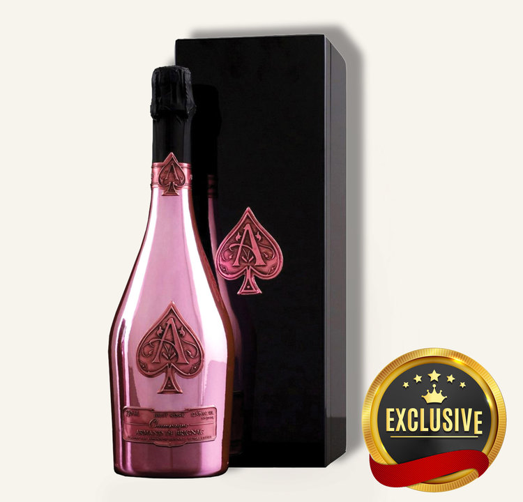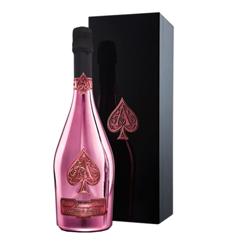 Armand de Brignac Rosé is among the finest examples of the famous pink Champagne blend ever conceived, and is packaged in a brilliant pink-gold bottle with matching adornments.