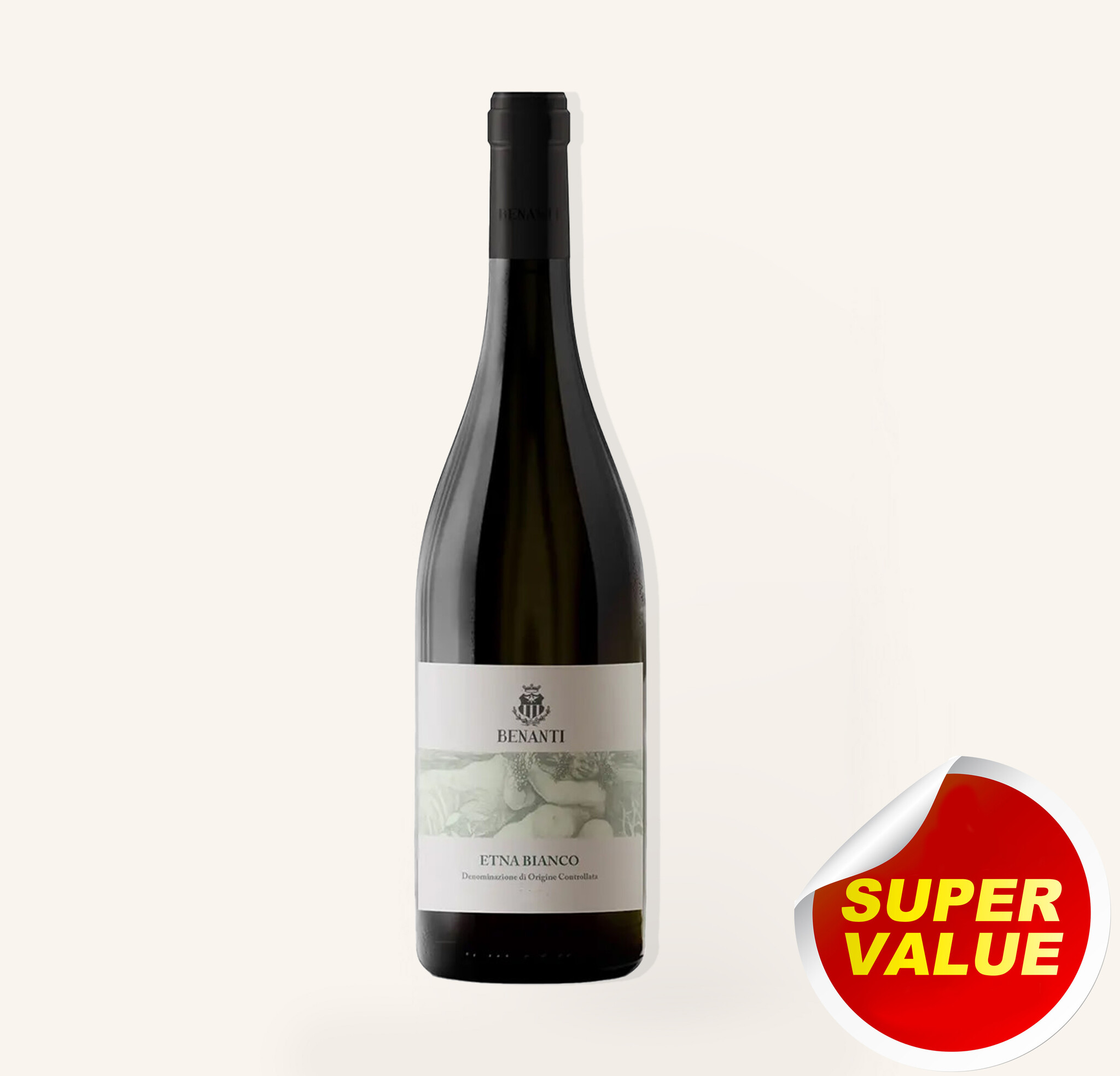 Benanti stands as a benchmark producer on Mount Etna, dedicated to expressing the identity of this dramatic volcanic landscape with clarity and respect. This Etna DOC Bianco is crafted exclusively from Carricante, the region’s most noble native white grape, sourced from carefully selected sites on the eastern and southern slopes of the mountain. High elevations, intense sunlight, and mineral-rich volcanic soils shape a profile defined by purity and precision. The result is a refined, site-driven expression that captures Etna’s unique balance of freshness, structure, and natural elegance, making it a standout choice for both everyday enjoyment and refined dining.