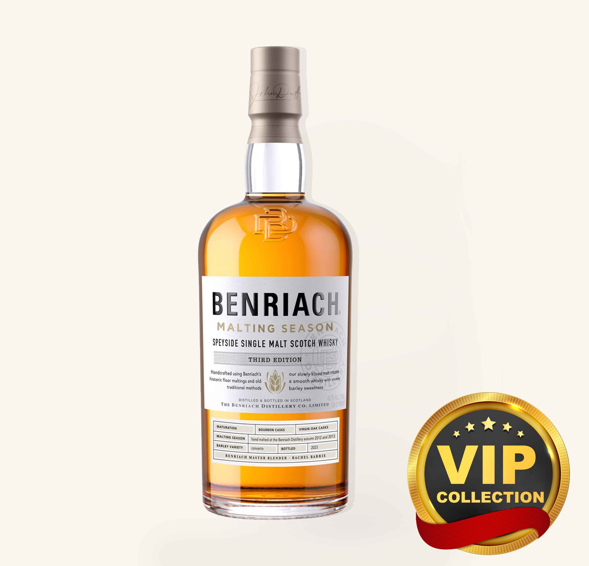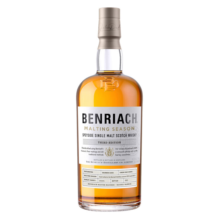 The BenRiach Malting Season Third Edition is a celebration of heritage craftsmanship, created at a historic Speyside maker renowned for its dedication to traditional floor-malting. Once each year, the team revives a century-old process passed down from founder John Duff, hand-turning select concerto barley to achieve a depth and texture that modern methods cannot replicate. This annual release is shaped by meticulous attention to detail and slow maturation in carefully chosen virgin oak and first-fill casks, resulting in a naturally radiant golden color and an artisanal character. Guided by Master Blender Dr. Rachel Barrie, each edition is crafted with unique barley selections and individual strengths, making every year’s release distinct and collectible.