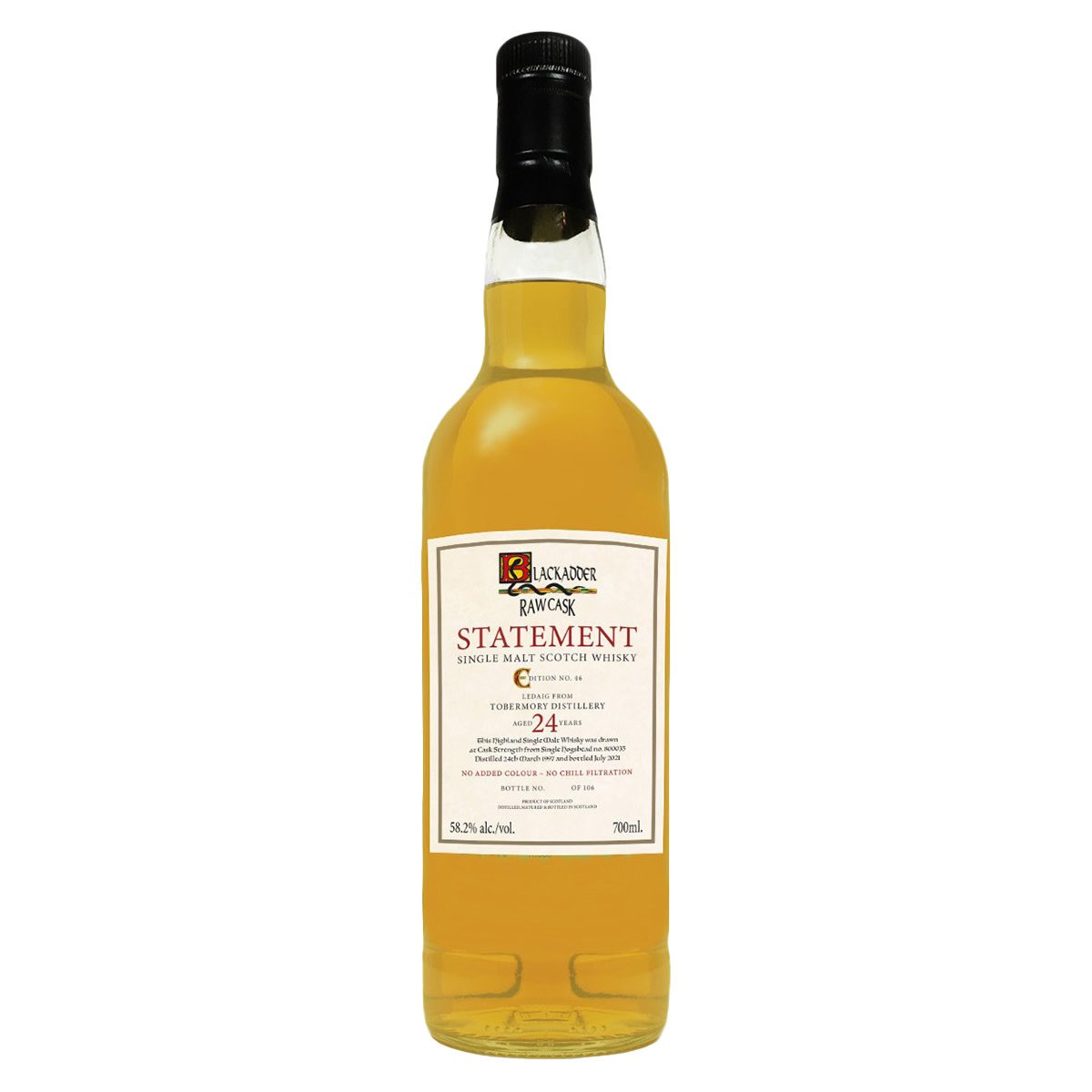 Blackadder Raw Cask 1997 Ledaig 24-Year-Old Statement Edition No. 46 is a pinnacle of traditional Scotch whisky craftsmanship, bottled under Blackadder’s prestigious “Statement” label—reserved only for whiskies of extraordinary character. Distilled in March 1997 at the Tobermory Distillery on the Isle of Mull and bottled at cask strength in July 2021, this Highland single malt was drawn from a single hogshead (#800035), yielding only 106 bottles. The Statement series represents the “King of Kings” within Blackadder’s portfolio, a step above its renowned Raw Cask range, emphasizing not just age and maturity, but the result of expert cask management and meticulous nosing. Unchillfiltered, uncolored, and unaltered—this is whisky in its purest, most honest form.