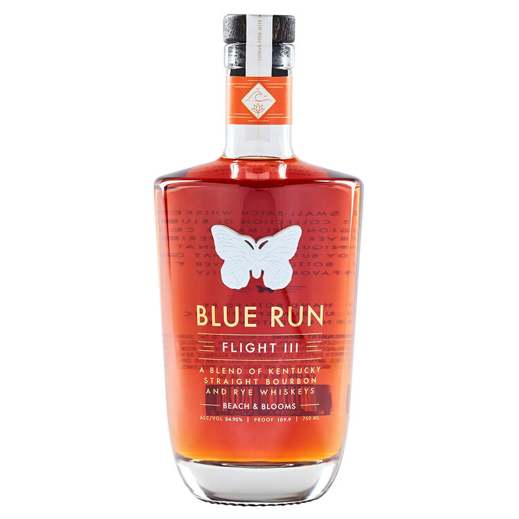 Blue Run Flight Series III “Beach & Blooms,” Blended American Whiskey is the vibrant crown jewel of Blue Run Spirits’ third Flight Series—a highly curated collection of six “micro‑batch” blends each composed from no more than four barrels and mashbills. Founded by five passionate individuals who named the brand after the childhood name for Georgetown, Kentucky’s Royal Spring, Blue Run blends modern innovation with deep respect for whiskey tradition. The expression was expertly crafted by Coors Spirits’ Head of Whiskey Development & Innovation, Shaylyn Gammon, under the advisory of Bourbon Hall of Famer Jim Rutledge, using four distinct mashbills of Kentucky straight rye and bourbon (ages 5 and 6 years) distilled at Castle & Key, Bardstown Bourbon Co., and an undisclosed partner, all matured in #3 and #4 char barrels in non‑temperature‑controlled rickhouses. The elegant packaging—with a pearlized white butterfly medallion that shimmers blue in the light—symbolizes the brand’s refined, transformative spirit and its pioneering approach to ultra-small‑batch blending.