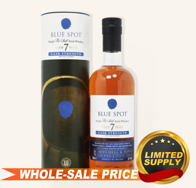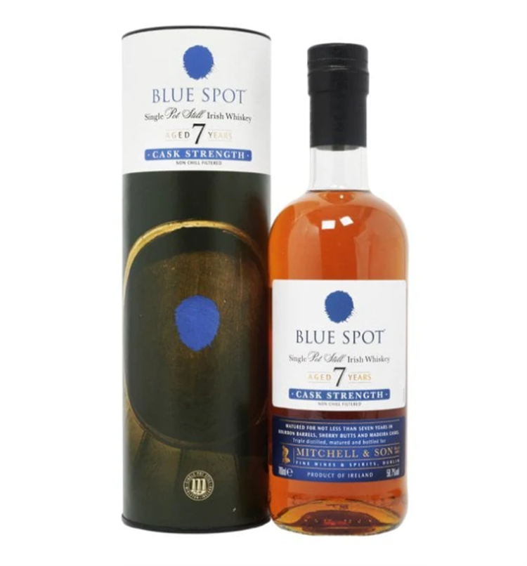 Mitchell & Son Wine Merchants is Ireland’s longest-running merchant of its kind and dates back to 1805. Beginning as confectioners, they built on this foundation to become reputable collaborators with Bow Street distillery as providers of fine whiskey the likes of which even the Queen of England enjoyed in the mid-1800s. Mitchell & Son Blue Spot 7 year old Single Pot Still Irish Whiskey is steeped in history and classic Irish whiskey flavors. The nose offers aromas of sherry, honey-soaked mango, and citrus zest. Hints of lime and nut along with sweet marzipan whipping cream soon tickle your senses. On tasting Blue Spot pot still whiskey, you enjoy an oily texturing that is ripe with sun-soaked orchard fruits, floral hues, and rich red berries. Mitchell & Son Blue Spot 7 year old single pot still Irish whiskey ends with more warmth and lasting layers of characterized taste.