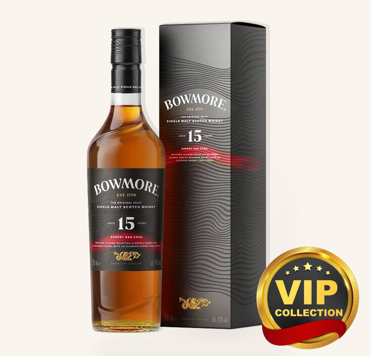 On the nose, Bowmore 15 unfolds with moist Corinth raisins and sweet dates layered over cinnamon and dark chocolate, all delicately wrapped in a whisper of soft smoke. The palate offers a compelling tapestry of cedarwood and treacle toffee, mingled with boiled sweet confectionery, clove spice, and liquorice root. The finish lingers intriguingly rich and wooded, revealing contented sweet spices that slowly fade into warmth. This 15 Year Old is a beautifully eclectic dram, perfect as a contemplative sipper or paired with robust dishes—think aged Manchego, dark chocolate desserts, or smoked game—to mirror its balance of sweetness and complexity.