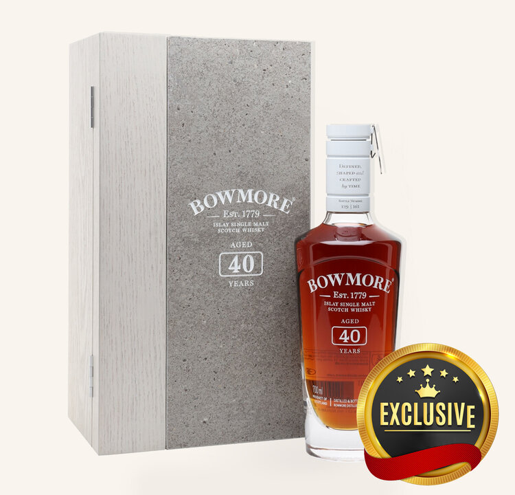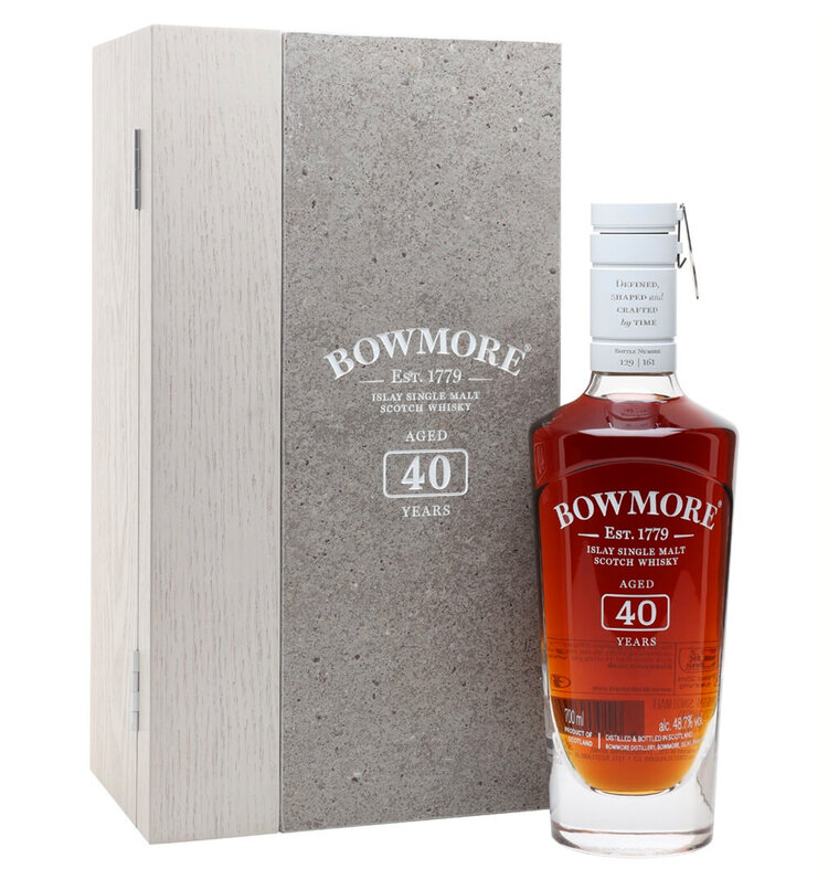Bowmore 40 Year Old is limited to just 161 bottles and is presented in a box with a design reminiscent of the weather-beaten stone on Islay.