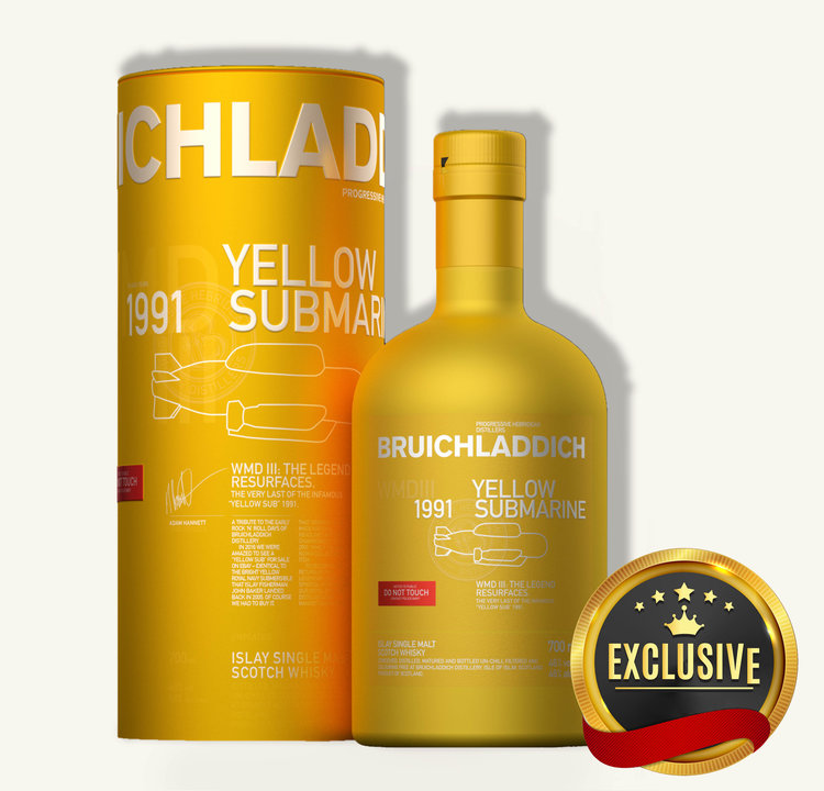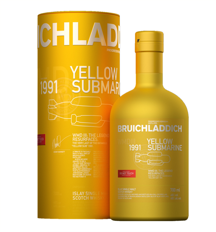 To celebrate the return of the Yellow Submarine to its spiritual home just outside the Bruichladdich distillery, head distiller Adam Hannett has hunted out the last parcel of that original 1991 spirit, now at a sublime 25 years old, and presented here as “WMD III”. Originally filled into refill sherry casks, this unpeated Bruichladdich spirit was then transferred into Spanish red wine casks in 2006. This third iteration has been balanced with refill bourbon casks, just as its predecessors.