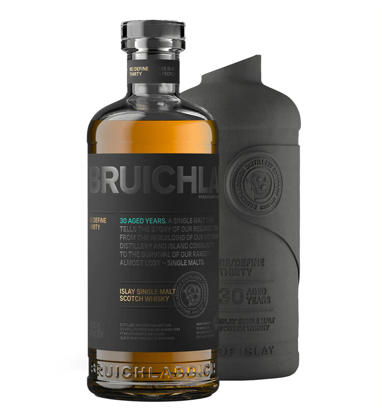 Bruichladdich 30 Year Old Single Malt Scotch Whisky – a rare and distinguished expression that stands as a testament to the artistry of time. Crafted on the windswept shores of Islay, this exceptional whisky is a celebration of three decades of patient maturation and meticulous craftsmanship.