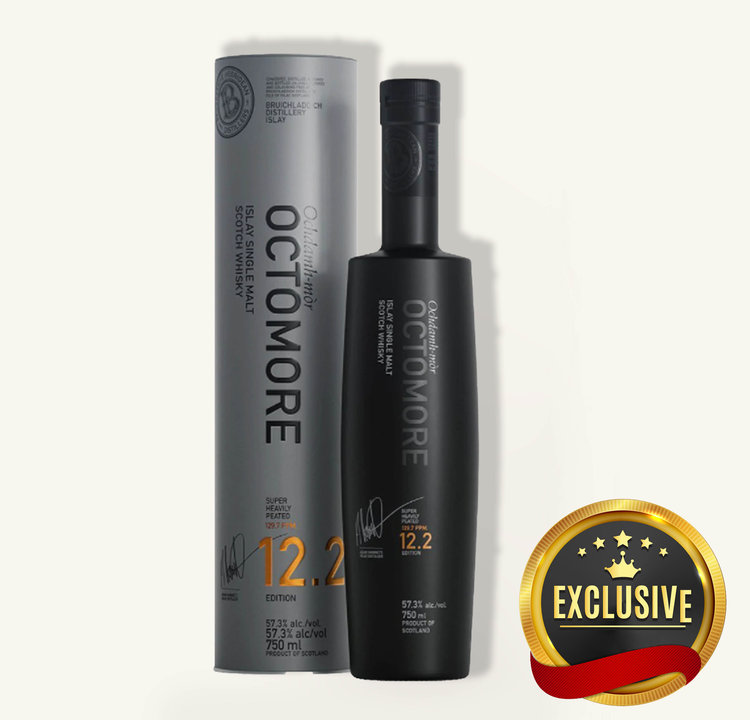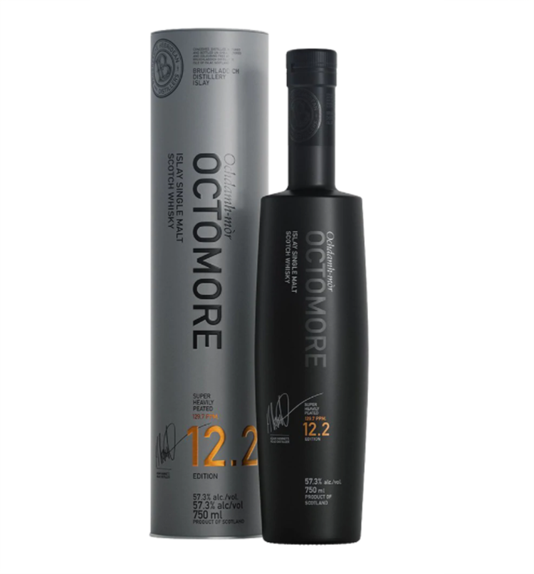 Octomore 12.2 follows in the footsteps of previous Sauternes legends. The now infamous Octomore 4.2 (Comus) became one of the most acclaimed and sought- after whiskies in our distillery’s portfolio, confirming that heavy peat smoke combined with sweet dessert wine of Sauternes is an incredible pairing. This Octomore 12.2 would spend three and a half years in ex-American oak casks, building a solid foundation of fruity and floral spirit in our lochside warehouses before being recasked in to impeccable quality Sauternes casks. The pivotal role of the Sauternes casks would add 18 months of supercharged fruit. Melon, white peach, honeysuckle and coconut add a real twist and sweetness to compliment the peat smoke of this heavily phenolic malt.