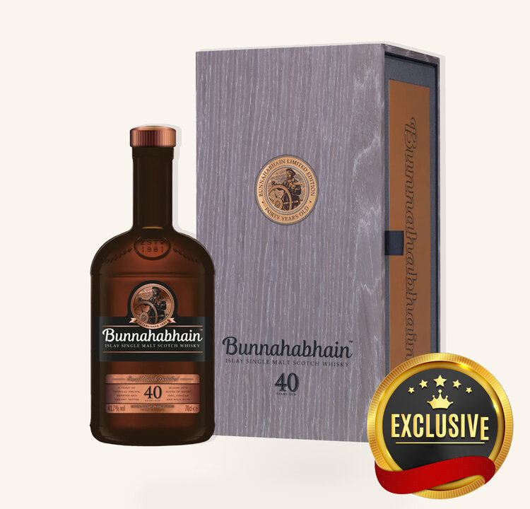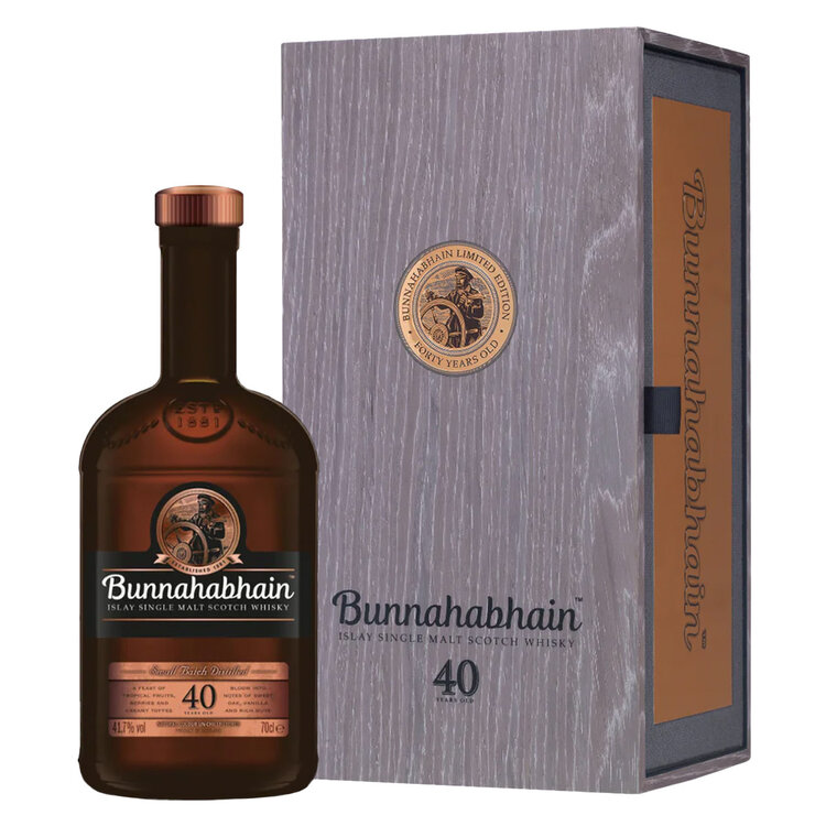 The Bunnahabhain 40 Year Old is a feast of tropical fruits and rich, sweet complexity. On the nose, it unfolds with hints of banana, berries, creamy toffee, vanilla, and delicate sweet oak, while the palate delivers layers of sweet malt, creamy caramel, ripe pineapple, toasted nuts, and soft waves of tropical fruit. The finish is long, sweet, and deeply fruity, making this a single malt to truly behold. Enjoy it with dark chocolate truffles or aged Manchego cheese to complement its lush, decadent character.