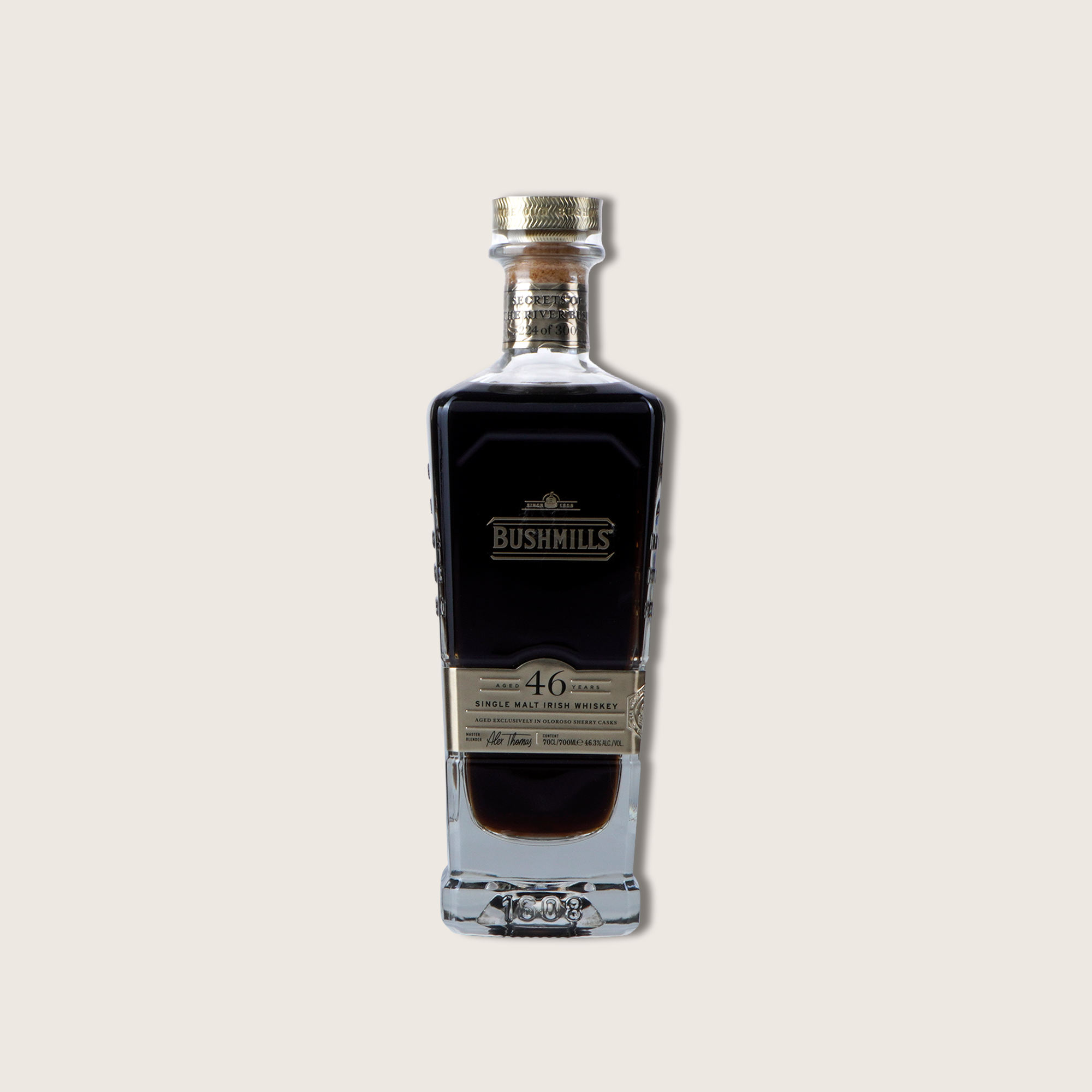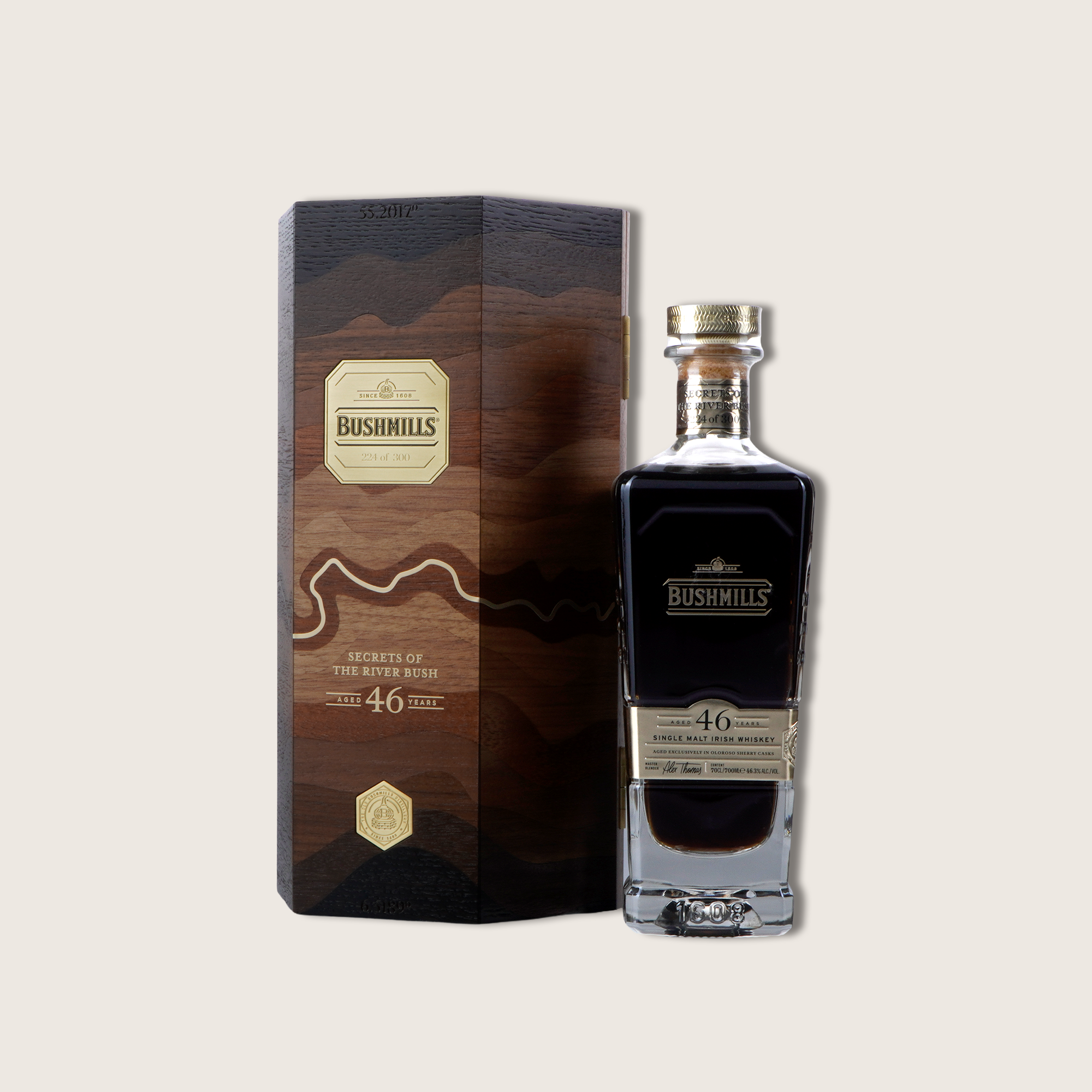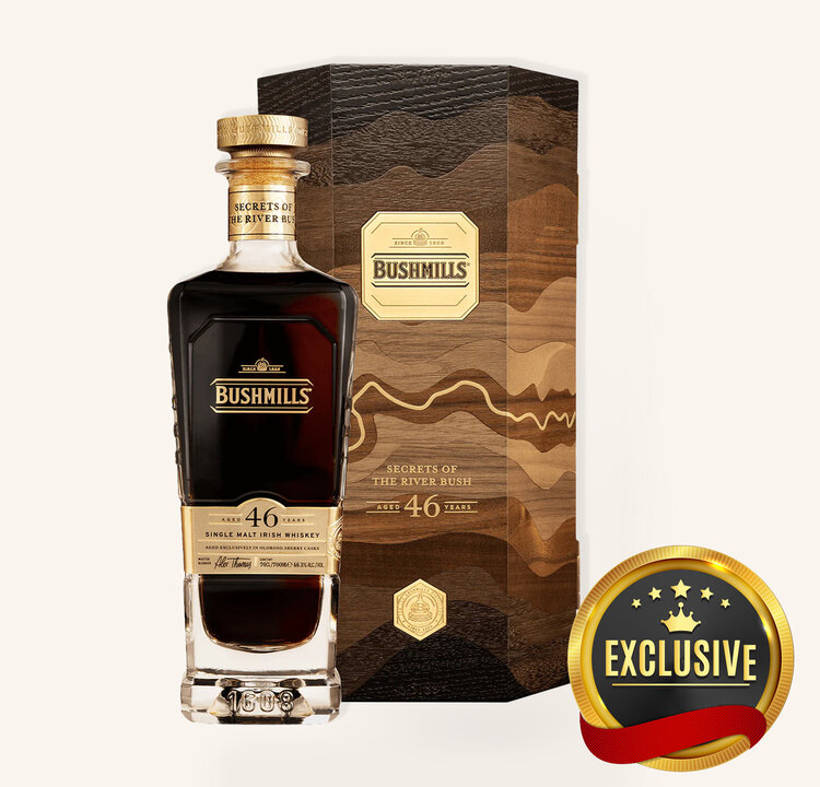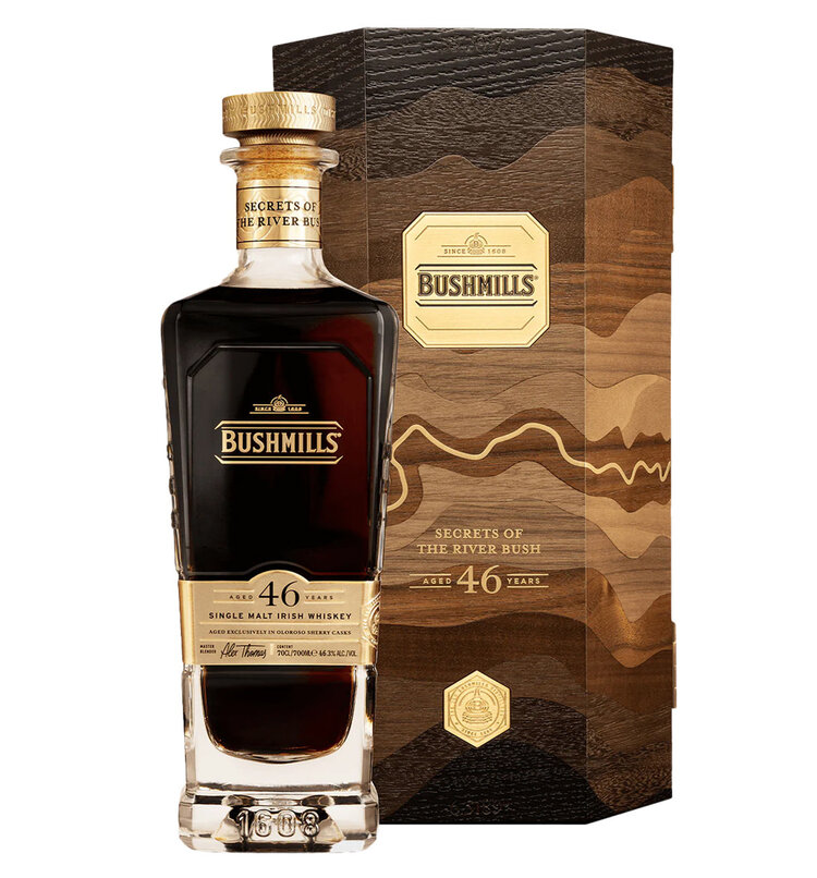 Bushmills 46-Year-Old Single Malt Irish Whiskey, known as "Secrets of the River Bush," represents a monumental release from the world's oldest licensed whiskey distillery, with a history dating back to 1608. Distilled in 1978, this exceptional single malt has matured for 46 years, making it the oldest expression ever offered by Bushmills. This rare whiskey pays homage to the River Bush, whose waters have been integral to the distillery's craftsmanship for over four centuries.