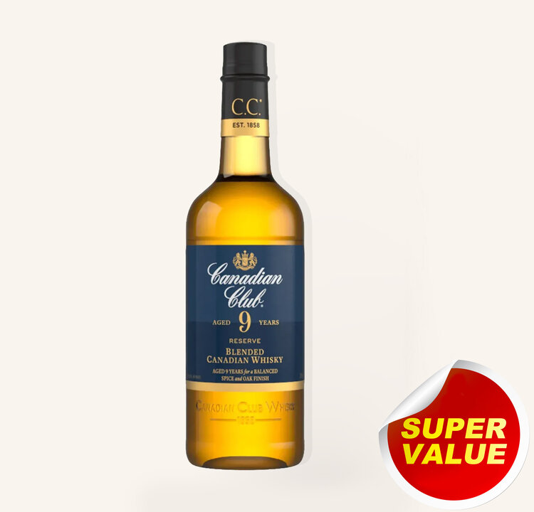 Canadian Club Classic 9-Year-Old Canadian Whisky is a distinguished expression from the storied Canadian Club brand, established by Hiram Walker in 1858 in Walkerville, Ontario. Renowned for pioneering the pre-barrel blending process, Canadian Club marries various distillates before aging, allowing the flavors to harmonize over time. This method contributes to the whisky's signature smoothness and complexity. The 9-Year-Old Classic is aged in white oak barrels, imparting rich oak flavors that intensify with maturity. This expression embodies the brand's commitment to quality and tradition, delivering a refined and mellow character that has been appreciated for over a century.