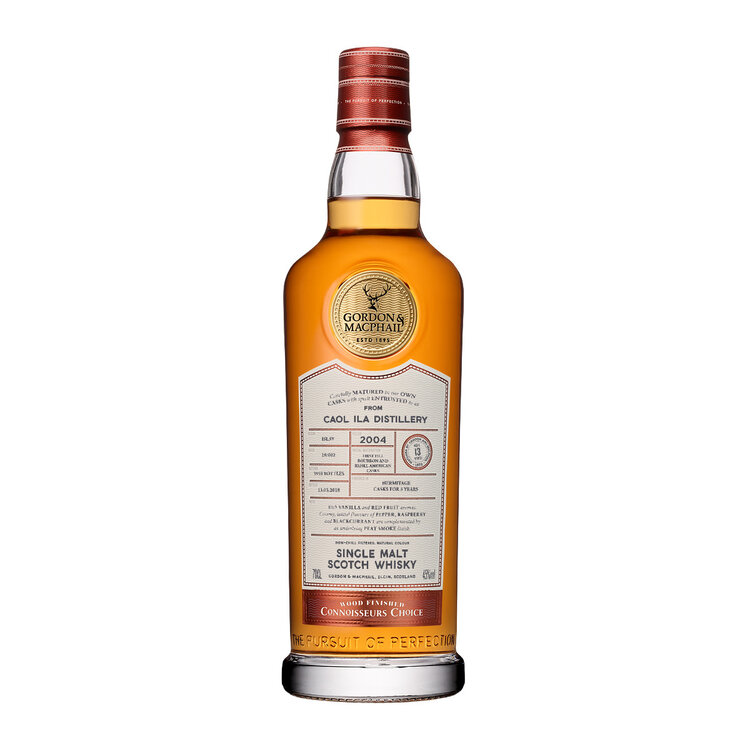 Caol Ila 13-Year 2004 Wood Finished Connoisseurs Choice by Gordon & MacPhail is a masterful expression from one of Islay’s iconic names, curated through over a century of expertise in selecting and marrying casks with spirit. Part of the ever-evolving Connoisseurs Choice range, this release reflects a singular vision, combining first-fill bourbon and refill American casks with three years in Hermitage casks to create an intricate and layered profile. Non-chill-filtered and crafted from small batches, this 13-year-aged release exemplifies meticulous care and a dedication to depth, structure, and character. Each bottle invites exploration, offering a rare glimpse into the complexities and nuances achievable through careful maturation and expert cask selection.