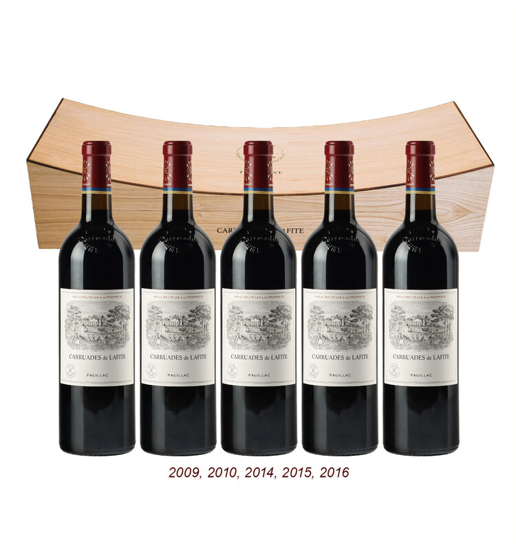 Carruades de Lafite, the esteemed second wine of Château Lafite Rothschild, offers a harmonious blend of approachability and the distinguished character of its grand vin counterpart. The "Curve Collection"—featuring two bottles each from the 2009, 2010, 2014, 2015, and 2016 vintages—presents a curated journey through a decade of Pauillac's terroir and the meticulous craftsmanship of one of Bordeaux's most revered estates. Each vintage encapsulates the unique climatic nuances of its year, reflecting the estate's commitment to excellence and the art of blending.