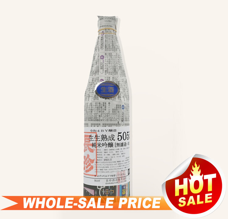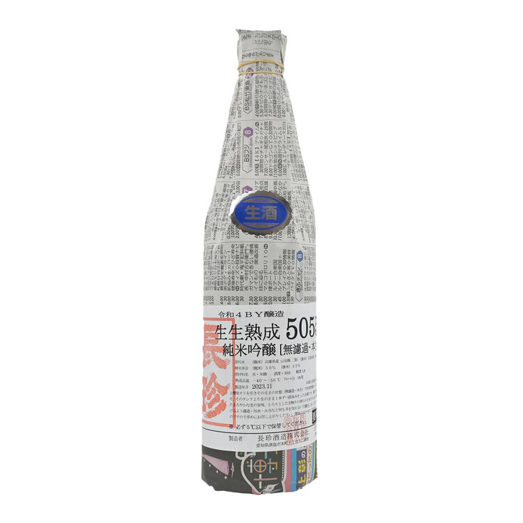Chochin Junmai Ginjo Nama Genshu 5055 is a celebrated seasonal release from Chochin, a historic producer founded in the late Edo period in Tsushima City, Aichi Prefecture. The name “Chochin,” meaning “long cherished rarity,” reflects the family’s aspiration to create a brew treasured across generations. Released each November, the popular “5055” edition is crafted using Hyogo-grown Yamada-Nishiki polished to 50% for koji rice and Hiroshima-grown Hattan-Nishiki polished to 55% for the main mash. This unfiltered, unpasteurized expression is pressed in early spring, then matured for approximately seven months in refrigerated tanks before bottling and resting further to achieve harmony. Part of the limited “Newspaper Series,” each bottle is wrapped to protect it from light, preserving its integrity and character.