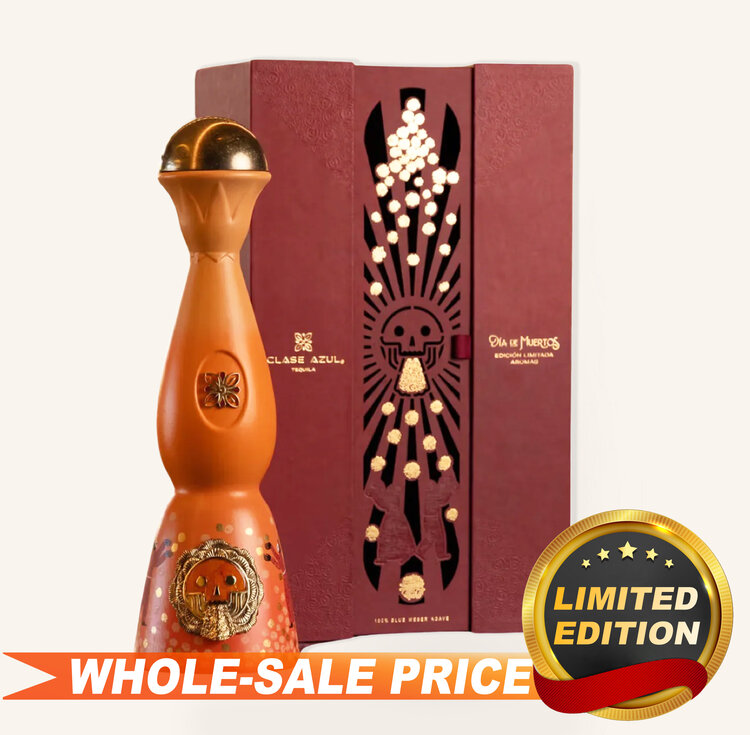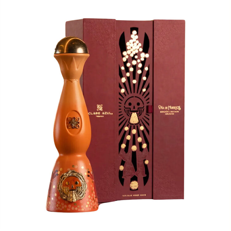 Clase Azul Dia de Los Muertos 2023 is crafted with 100% Blue Webber Agave for el Dia De Los Muertos as Mayan tradition states, death doesn’t mean we are gone forever, only that our bodies become energy in a different dimension. Our Dia de Muertos bottle - represents the journey that all humans embark on after death. The spiral design represents the cycle of life, everything has a beginning and an end. Created only for collectors, it is a limited edition masterpiece covered in marigold glaze and features an ornament decorated with 24-karat gold. Featuring an illustration on the back created by Artist Jimena Estíbaliz. The art piece depicts a men and women harvesting cempasúchil flowers accompanied by xoloitzcuintles,. The tequila comes in a one-liter decanter, and there are only 3,500 available.