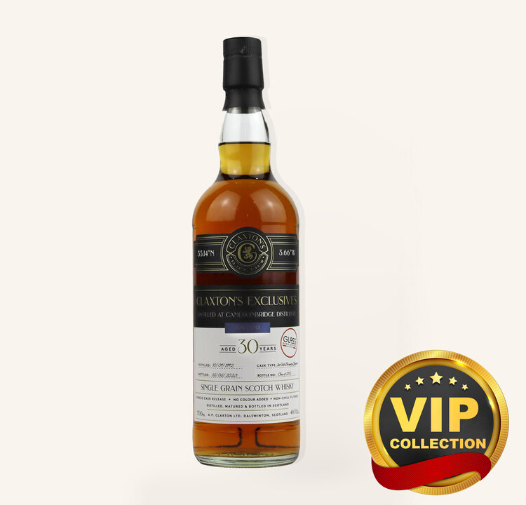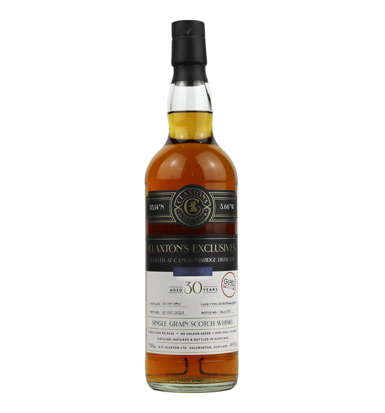 Claxton's Cameronbridge 30-Year-Old Single Grain Scotch Whisky is a rare and refined expression from one of Scotland’s most historic distilleries. Distilled on September 10, 1992, at the renowned Cameronbridge Distillery—established in 1824 and a pioneer in continuous column distillation—this whisky was initially matured in traditional casks before being re-racked into a first-fill brandy quarter cask for a final year of finishing. Bottled on June 16, 2023, at 48.9% ABV, this limited release comprises only 156 bottles, each reflecting Claxton’s meticulous approach to cask selection and maturation. As an independent bottler, Claxton’s is dedicated to showcasing the unique character of each cask, ensuring that every release offers a distinctive and high-quality whisky experience.