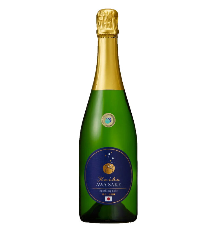 Kaika Awa Junmai Ginjo Sparkling Sake has a refreshing fruity aroma of white peach, pear, muscat, and grapefruit. This sparkling sake with natural carbonation is obtained after secondary fermentation in the bottle, elegantly harmonized with citrusy notes and creamy and delicate bubbles. Mild and light, with an excellent balance of moderate sweetness, refreshing acidity, and a clean aftertaste.