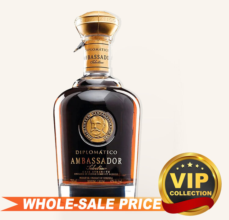 Diplomatico Ambassador is a premium rum made from the finest reserves of the distillery, aged for at least twelve years in white oak barrels to reach its peak maturity. It then undergoes an additional two years of finishing in Pedro Ximenez sherry casks, enhancing its rich and complex flavor profile. Bottled directly from the barrel, Diplomatico Ambassador ensures the full preservation of its exceptional sensory qualities.