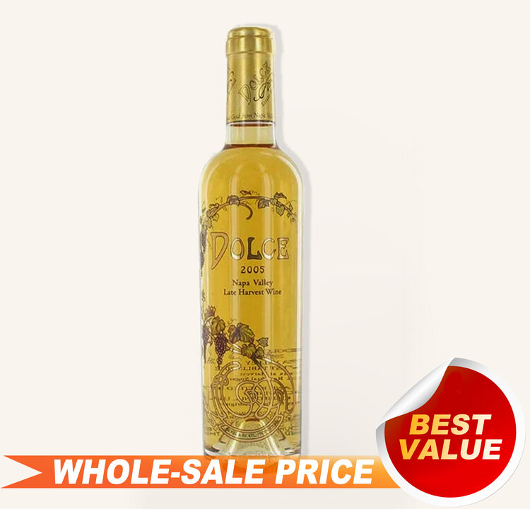 Dolce is Napa's ultimate Sauternes-style dessert wine, with its noble botrytis underpinning and joyful acidity. A combination of late harvest Sémillon and Sauvignon Blanc from a 20-acre estate vineyard in the temperate town of Coombsville, the vineyard is naturally sheltered from the wind so that the morning fog and natural humidity lingers to allow botrytis to take hold on the grape clusters. The luxurious Sauternes style is completed by 32 months in new French oak before bottling.