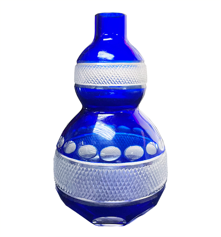 By cutting it you can see the inner transparent glass from the surface color glass and the splendid contrast of transparent and colored glass will emerge with traditional patterns and flower facet design.