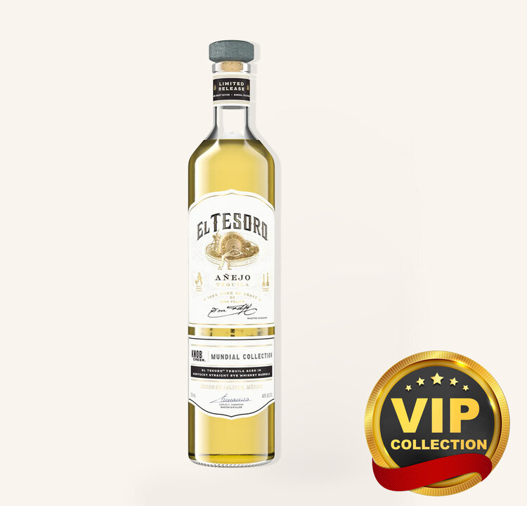 El Tesoro Tequila Añejo Mundial Collection – Knob Creek Edition is a limited-release collaboration from El Tesoro Tequila, crafted under the guidance of Master Distiller Carlos Camarena. Part of the acclaimed Mundial Collection, this special edition celebrates traditional craftsmanship while partnering with renowned producers around the world. For this release, El Tesoro Añejo was matured for 12 months in genuine charred-oak barrels that previously held rye from Knob Creek, creating a distinctive cross-cultural expression. The result is a full-bodied, well-rounded tequila with wheat-brown color and golden tones, offering remarkable depth, balance, and complexity shaped by the character of Kentucky oak.