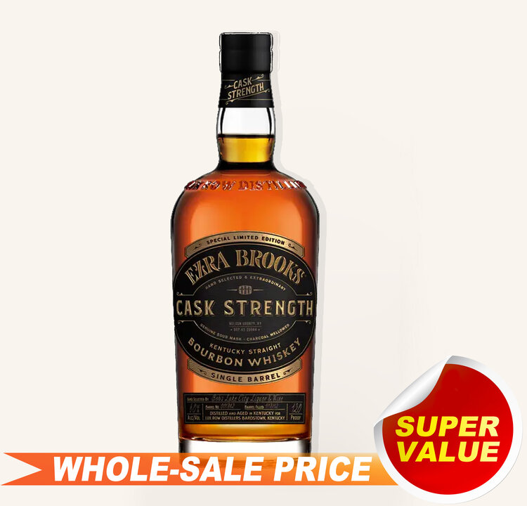 Ezra Brooks Cask Strength Single Barrel is crafted with the highest quality ingredients, aged traditionally, charcoal filtered, and bottled at Cask Strength (120 proof) to offer a more complex and robust flavor profile. On the nose, it presents traditional aromas of caramel, vanilla, wheat, and a subtle hint of candy corn, creating an inviting and rich bouquet.