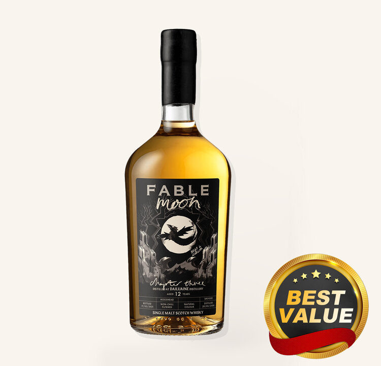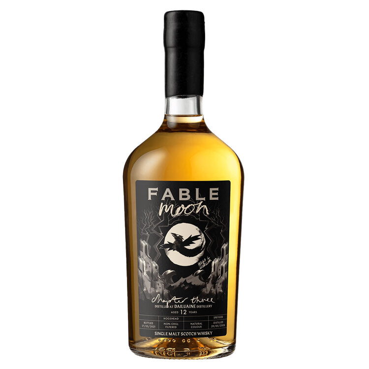 Fable Whisky is an independent single-cask and blended malt bottler founded on the art of storytelling, animation, and illustration, dedicated to releasing whiskies that are "Far From Ordinary." Each release is presented as a "chapter" in an imaginative tale—bottled in their purest form, with natural color, non–chill filtered, and bottled at cask strength. Chapter 3, titled Moon, draws from “The Ghost Piper of Clanyard Bay” legend and features artwork by Hugo Cuellar that brings the myth vividly to life. This expression is a single-cask bottling of Dailuaine distilled in 2010 and bottled around April 2022, with just 308 bottles released from a hogshead cask, showcasing Fable’s precise, artisan approach.