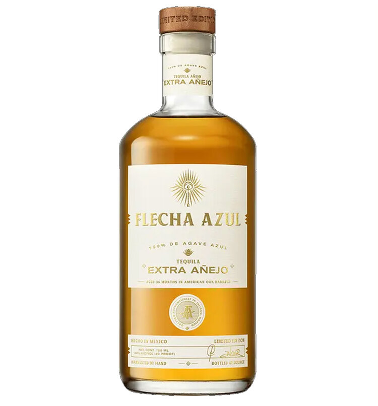 Flecha Azul Extra Anejo is their most premium tequila. The years of aging deliver a full and balanced blend of oak, subtle sweetness, and smooth butterscotch. It has a full and balanced blend of oak and creamy butterscotch, with an incredibly smooth finish.