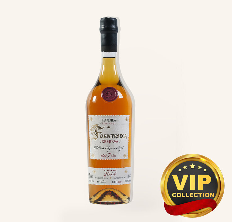 The Fuenteseca 7Yr Reserva Añejo Tequila de Agave Azul 2014 Vintage is a masterful expression of aged tequila that marries complexity, precision, and artistry. Crafted using 17% Coffey column still distillation and 83% alembic copper still, this tequila showcases a unique duality of styles. Its maturation is equally intricate, with 17% aged in French oak barrels, imparting delicate and nuanced flavors, and 83% aged in Hungarian oak, renowned for its bolder fruit-driven character. The barrels are carefully situated—some resting in an underground aging warehouse, others in an above-ground cellar—both located in Tequila, Jalisco, at 1,180 meters above sea level. This meticulous combination of distillation methods, barrel types, and aging environments results in a tequila that is both richly layered and refreshingly vibrant.