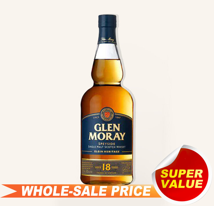 Speyside, Scotland- Glen Moray 18 Year Scotch Whisky is quietly understated and oozes rich, old, oak wood and a gentle, but wide variety of woody spice notes across the palate. There is a malty core and a touch of fruit as well.