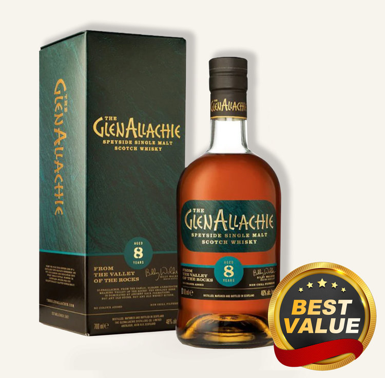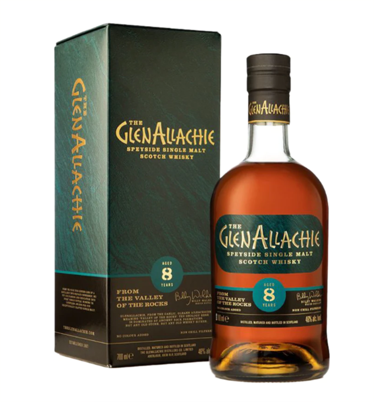 The GlenAllachie Speyside Single Malt is an 8-year-old high-quality Scottish single malt whiskey, one of the youngest in The GlenAllachie. It comes from the Speyside area.