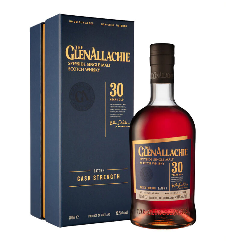 The GlenAllachie Distillery, nestled in Scotland's Speyside region, has been crafting exceptional single malt Scotch whisky since 1967. Under the stewardship of Master Distiller Billy Walker, the distillery has garnered acclaim for its meticulous wood management and innovative cask maturation techniques. The GlenAllachie 30-Year-Old Cask Strength Batch 4 epitomizes this dedication, showcasing a harmonious blend of aged whiskies matured in three Pedro Ximénez and two Oloroso sherry casks. Bottled at its natural cask strength of 49.1%, without added coloring or chill filtration, this limited release offers an unadulterated expression of the distillery's craftsmanship and the rich influence of sherry cask maturation.