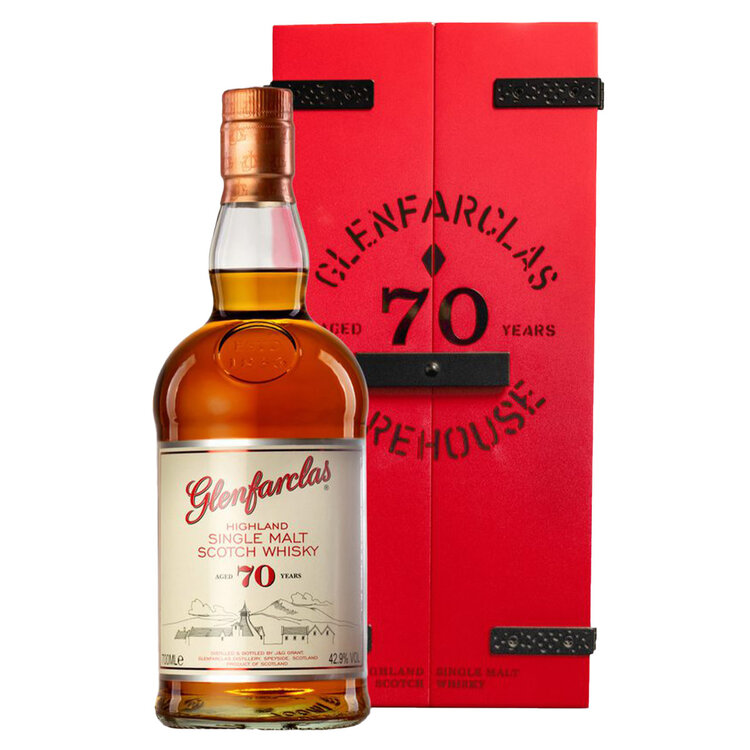 Distilled on 20 November 1953 and launched in 2025, the Glenfarclas 70-Year-Old marks the pinnacle of this iconic Speyside distillery’s legacy—embodying over seven decades of meticulous ageing, generational expertise, and uncompromising dedication to craft. Matured in the distillery’s traditional dunnage warehouses beneath the slopes of Ben Rinnes, this exceptional release was laid down in first-fill sherry casks, overseen by six successive distillery managers who safeguarded its progress with care and patience. Presented in a bespoke case that underscores Glenfarclas’s ethos of “substance over show,” this limited edition—just 262 bottles globally—stands among the oldest and rarest Scotch whiskies ever bottled, a testament to the Grant family’s commitment to continuity and quality since 1865.