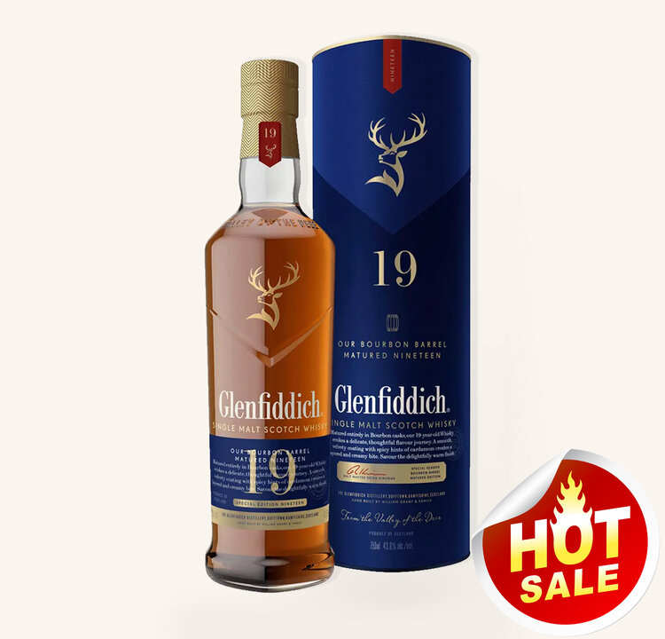 Glenfiddich 19 Year Old 'Ex-Bourbon' Single Malt Scotch Whisky hails from Speyside, Scotland, home to one of the most renowned distilleries in the world. As part of Glenfiddich’s premium range, this 19-year-old expression is entirely matured in American ex-bourbon casks, allowing it to capture the influence of the oak while still preserving the spirit's signature character. With decades of expertise and craftsmanship, Glenfiddich continues to deliver complexity and depth in every bottle.