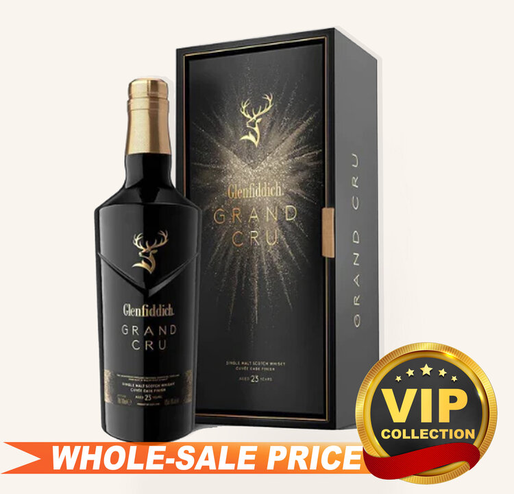Glenfiddich Grand Cru Single Malt Scotch Whisky matured for 23 years in American and European oak casks and elegantly finished in rare French cuvee casks. TAG Global Spirits Awards Double Gold 2024, SF World Spirits Competition Double Gold 2024.