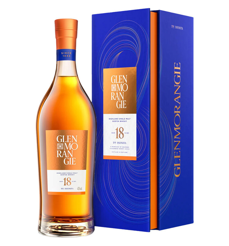 Glenmorangie The Infinita 18 Year Old Single Malt Scotch Whisky is a masterpiece of imagination and craftsmanship, embodying the endless possibilities of flavor that define Glenmorangie’s world-renowned creations. Aged to perfection over 18 years, this expression is a testament to the genius of Dr. Bill Lumsden, Glenmorangie’s award-winning whisky maker, whose artistry brings a kaleidoscope of tastes and aromas to life. Each sip unveils a new and wondrous flavor journey, showcasing honeyed sweetness rippling through pools of caramelized orange, delicate gardens of jasmine and lemon blossom, and rich depths of fig and orange marmalade, all gently kissed by whispers of campfire smoke.