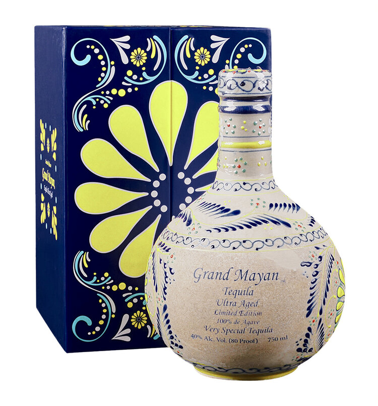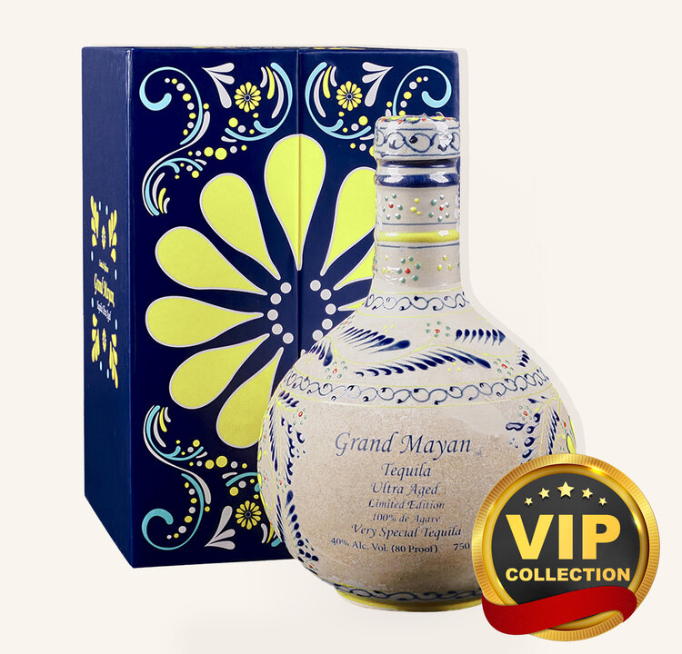 Grand Mayan Ultra Aged Añejo Limited Release Tequila is a luxurious and refined expression, aged for a minimum of five years to achieve unparalleled smoothness and complexity. Crafted from hand-selected Central-Highland Blue Weber Agave, the tequila undergoes traditional slow cooking in brick and stone ovens, extended fermentation, and double distillation in copper pot stills. It is then matured in both American oak and French ex-cognac barrels, resulting in a tequila with rich layers of flavor and sophistication. On the nose, expect enticing aromas of roasted nuts and agave, followed by a palate of sweet blue agave, dark chocolate, and a velvety texture that lingers with a complex, long finish.