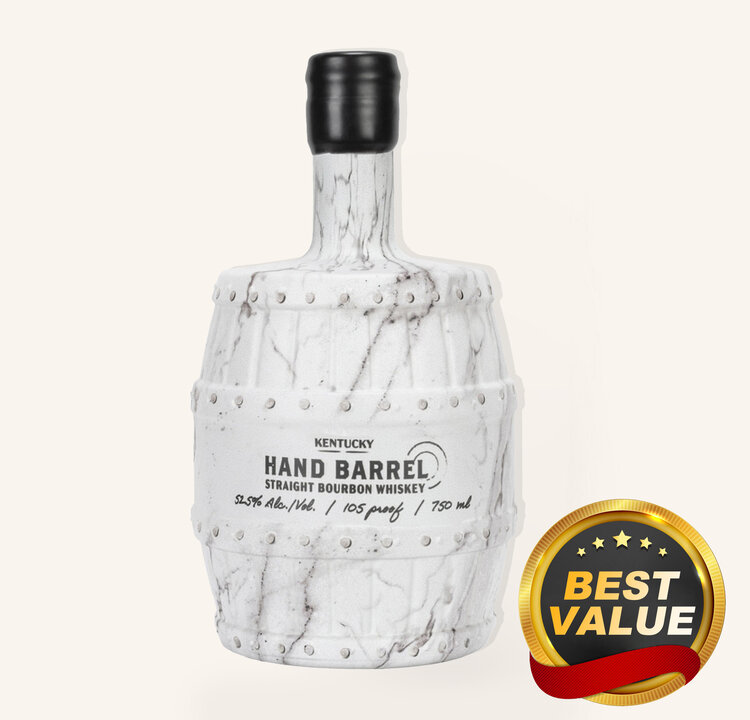 Hand Barrel Bourbon Small Batch is a Kentucky Straight Bourbon Whiskey that captivates the senses with its inviting pale amber hue. On the nose, rich aromas of toffee, caramel, and buttered corn mingle with a hint of cinnamon and pepper spice. The palate delivers a luxurious experience, featuring waves of oaky caramel and butter that transition into bursts of pepper, balanced by a honeyed sweetness and the comforting flavors of baked apple and cinnamon.