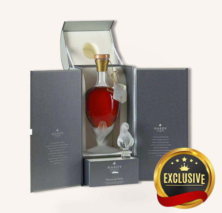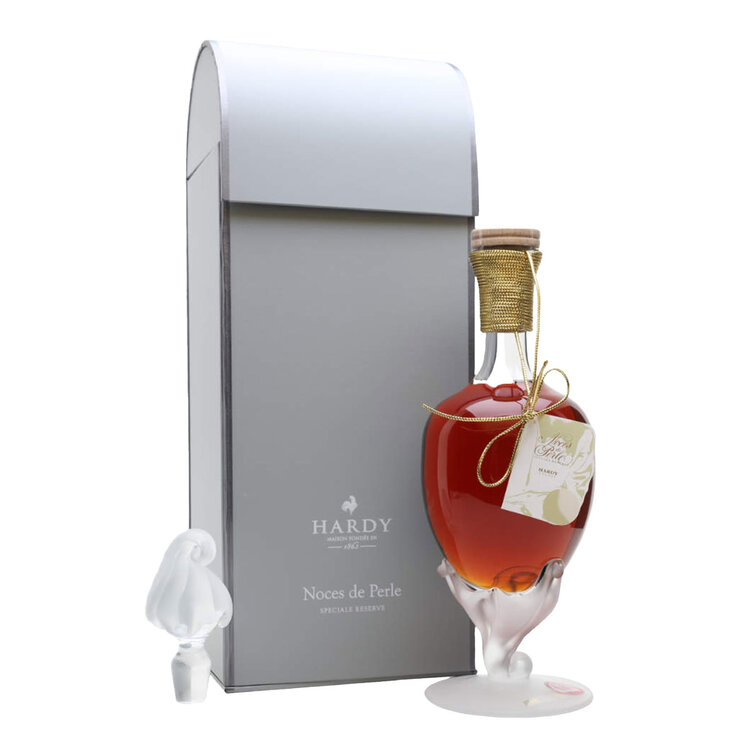 Cognac Hardy Noces de Perle is a luxurious 30-year-old Grande Champagne cognac presented in an exquisite Art Nouveau crystal carafe. As part of the prestigious wedding anniversaries series, this soft and rounded cognac embodies a feminine elegance, crafted from a fine selection of 15 carefully chosen Grande Champagne eaux-de-vie. Made from Ugni Blanc, Folle Blanche, and Colombard grape varieties, the eaux-de-vie are aged for three decades in lightly toasted Limousin oak barrels, offering a rich and refined expression of craftsmanship.