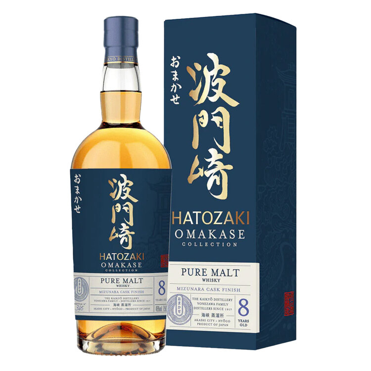 Hatozaki Omakase Pure Malt is a 100% malt craft whisky, a blend of single malts of at least 5-6-yrs, in small batches of at least 10 casks. The blend is aged for 8yrs in old American oak and traditional mizunara casks. Uncolored and unchilled filtered to preserve characteristics.