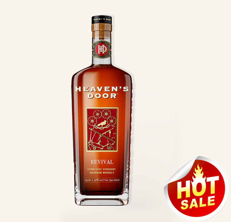 Heaven's Door Revival Tennessee Straight Bourbon is a distinguished expression from the award-winning whiskey collection co-founded by legendary musician Bob Dylan. Established in 2018, Heaven's Door embodies Dylan's artistic spirit, blending traditional craftsmanship with modern innovation. Revival is a high-rye, small-batch bourbon produced, aged, and bottled in Tennessee. Crafted using the sour mash process and rich, unadulterated limestone water, its non-chill filtered bottling preserves the whiskey’s full character and depth of flavor. Bottled at 92 proof (46% ABV), Revival is aged for over five years in new American oak barrels, resulting in a smooth and lasting finish with notes of vanilla and baking spices layered over a bed of toasted oak.