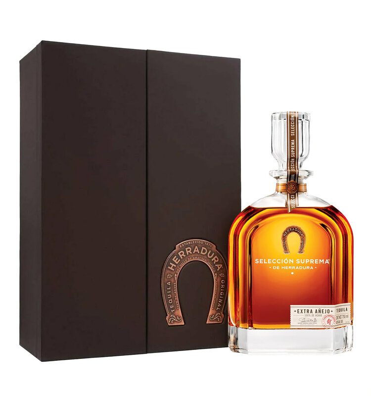 Herradura Selección Suprema Extra Añejo Tequila is a masterpiece that embodies the pinnacle of craftsmanship and innovation. First introduced in 1994, this extraordinary tequila is aged for 49 months in American white oak barrels, creating a rich, complex profile that captivates both the palate and the senses. Its deep amber hue reflects the intense flavors within, blending vivid notes of agave, cinnamon, and tobacco. This tequila offers an unparalleled experience of elegance, delivering a smooth, warm finish that lingers long after each sip.