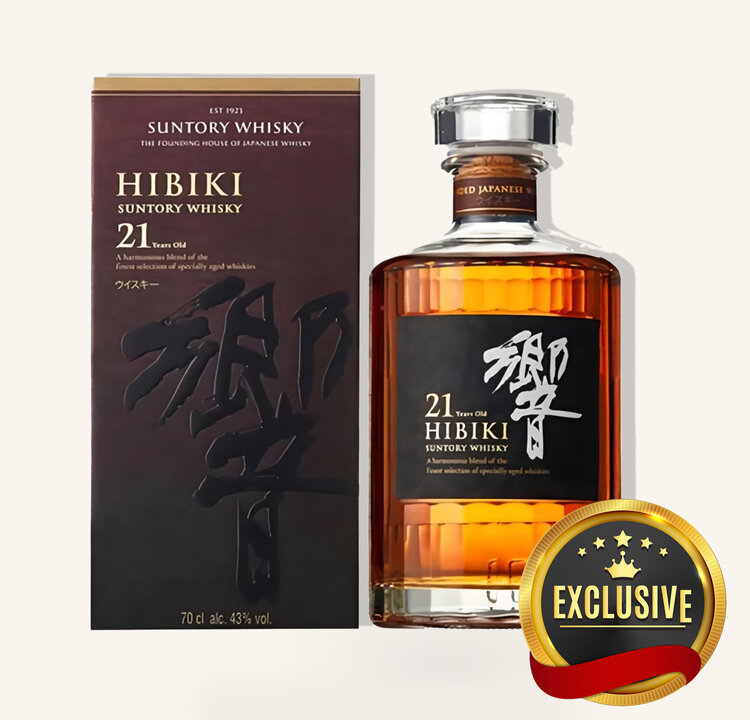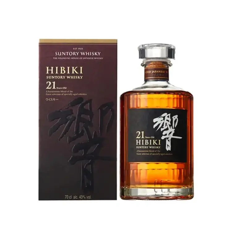 HIBIKI 21 IS COMPRISED OF SINGLE MALTS FROM THE HAKUSHU AND YAMAZAKI DISTILLERIES THAT ARE AGED IN A TRIO OF AMERICAN (EX-BOURBON), EUROPEAN (EX-SHERRY) AND JAPANESE (MIZUNARA) OAK BARRELS. EACH COMPONENT MALT IS AGED FOR AT LEAST TWENTY ONE YEARS BEFORE BLENDING TO CREATE THIS COMPLEX AND LOVELY WHISKY.