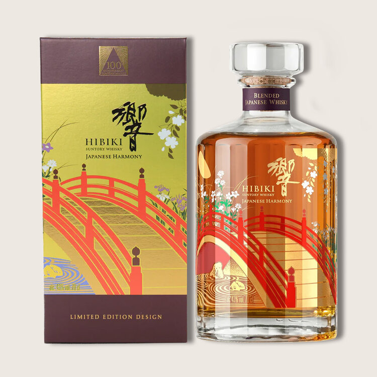 Hibiki Japanese Harmony 100th Anniversary Edition is inspired by our relentless pursuit of quality, ingenuity and expressiveness – rooted in “Monozukuri” craftsmanship and Japanese culture. A celebration of Suntory Whisky's centennial milestone, the design features a bridge with the traditional Japanese art of Setsugekka – snow, moon and flowers to showcase the passing of seasons. The bridge is a connection to each of the four seasons connecting our past and future, in the hope that tradition and history won’t be forgotten, always to be respected as we look forward. The unique 24-faceted bottle represents 24 hours in a day, with 24 Japanese seasons in a year.