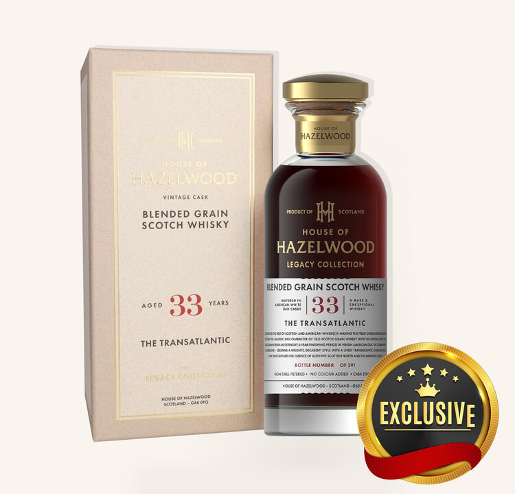 Born from a vision to honor generations of craftsmanship, the House of Hazelwood Legacy Collection embodies heritage, artistry, and a pursuit of timeless refinement. This particular creation bridges two great traditions—uniting the depth and elegance of the Scottish north with the bold, sun-warmed character of the American south. Matured for decades and completed through an extensive period in untouched American oak, it reveals a rare harmony between sweetness and spice, weight and grace. The result is a richly layered expression that pays tribute to the spirit of exploration and the exchange of cultures across the Atlantic.